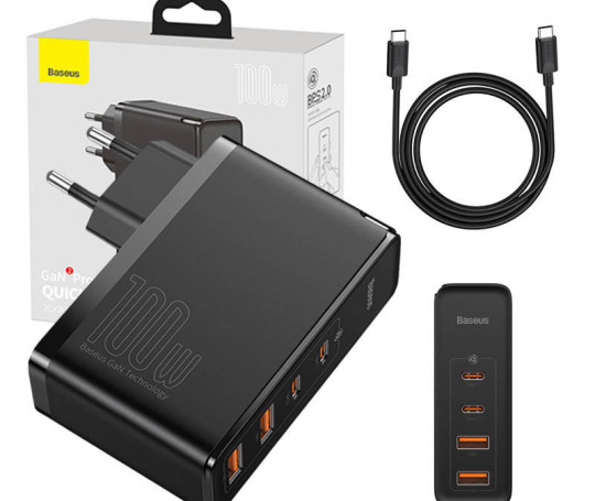 Baseus Ładowarka sieciowa GaN2 Pro | 2xUSB-C, 2xUSB | 100W | czarna