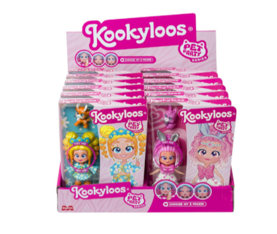 Poznaj nową kolekcję KookyLoos Pet Party z ośmioma nowymi laleczkami i ich uroczymi zwierzątkami! KookyLoos wracają z jeszcze bardziej wyrazistymi minkami i supermodnymi stylizacjami. Każda laleczka może zmieniać wyraz twarzy za pomocą jednego "kliknięcia", co sprawia, że zabawa jest jeszcze bardziej kreatywna. Towarzyszą im urocze zwierzątka. Jakie zwierzątko stanie się Twoim ulubionym?