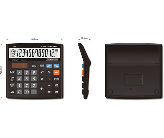 Vector kalkulator biurowy VC-500VIII | biurowy | 12 miejsc | Czarny