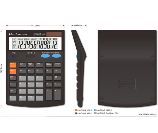 Vector kalkulator biurowy VC-666 | biurowy | 12 miejsc | czarny
